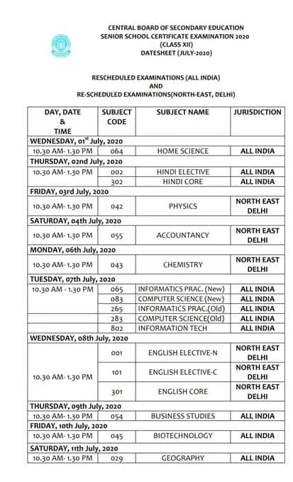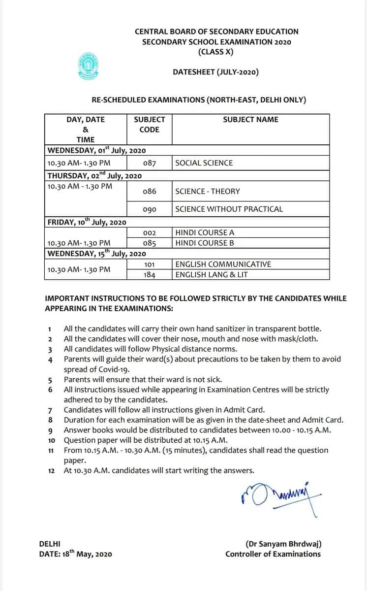 ജൂലൈ ഒന്നു മുതലാണ് സിബിഎസ്ഇ 10,12 ക്ലാസുകളിലെ ബാക്കിയുള്ള പരീക്ഷകൾ നടത്തുക. പരീക്ഷാ ടൈം ടേബിൾ സിബിഎസ്ഇ പുറത്തുവിട്ടിട്ടുണ്ട്.