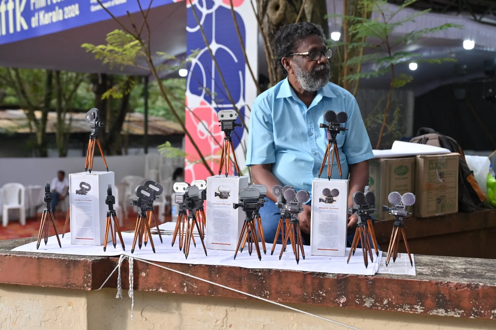 തിരുവനന്തപുരം: 29-ാമത് രാജ്യാന്തര ചലച്ചിത്രമേളയിൽ കൗതുകക്കാഴ്ചയായി മിനിയേച്ചർ ക്യാമറ പ്രദർശനവും വില്പനയും. ഏറെക്കാലം സിനിമകളിലെ കലാസംവിധാന മേഖലയിൽ സഹായിയായി പ്രവർത്തിച്ച് പരിചയസമ്പന്നനായ മോഹനൻ നെയ്യാറ്റിൻകരയാണ് കുഞ്ഞൻ ക്യാമറകളുടെ നിർമാണത്തിന് പിന്നിൽ. പാനാവിഷൻ SPSR, മിച്ചെൽ NC239, ആരിഫ്ലെക്സ് 35 II B എന്നീ പഴയകാല ക്യാമറകളുടെ മാതൃകയിലാണ് മിനിയേച്ചർ ക്യാമറകൾ ഒരുക്കിയിരിക്കുന്നത്.