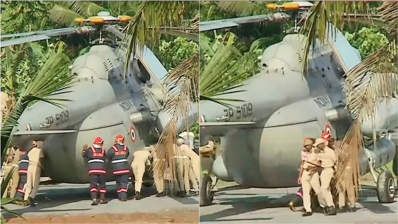 കോൺക്രീറ്റിൽ താഴ്്ന്ന രാഷ്ട്രപതി വന്ന ഹെലികോപ്റ്റർ തള്ളിനീക്കാൻ ശ്രമിക്കുന്ന പോലീസും ഫയർഫോഴ്സും (വീഡിയോ ദൃശ്യം)