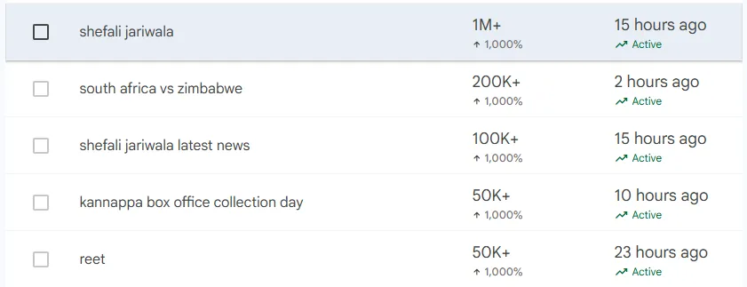 ഷെഫാലി ജാരിവാലയുടെ അപ്രതീക്ഷിത വിയോഗത്തിനു പിന്നാലെ സംഭവം ഗൂഗിളിൽ തിരഞ്ഞത് ആരാധകരടക്കം ലക്ഷക്കണക്കിന് ആളുകളാണ്. ഗൂഗിളിന്റെ ഔദ്യോഗിക കണക്ക് അനുസരിച്ച് ഒരു ദശലക്ഷത്തിലധികം ആളുകളാണ് മരണ വിവരം തിരഞ്ഞത്.
