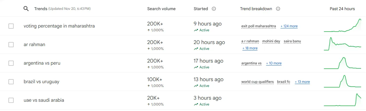 ഇതോടെ മഹാരാഷ്ട്രയിലെ പോളിങ് ശതമാനം ഗൂഗിൾ ട്രെന്റിങിൽ മുന്നിലെത്തിയിരിക്കുകയാണ്. ഒൻപത് മണിക്കൂറിനുള്ളിൽ രണ്ടു ലക്ഷത്തിലധികം സെർച്ചുകളാണ് മഹാരാഷ്ട്ര പോളിങ് ശതമാനത്തിൽ (Voting Percentage in Maharashtra) ഉണ്ടായിരിക്കുന്നത്.