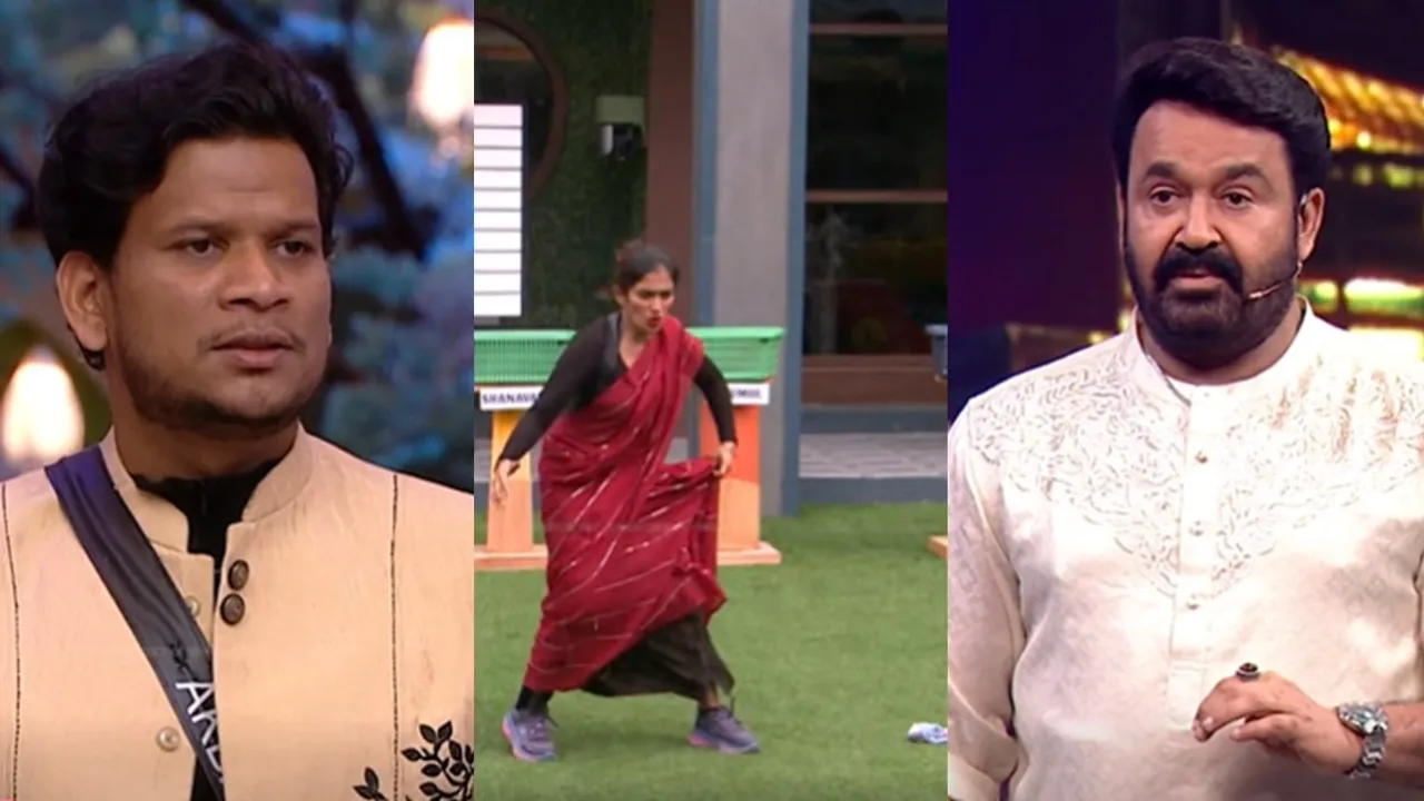 Bigg Boss malayalam Season 7: ബിഗ് ബോസ് മലയാളം ഏഴാം സീസൺ നൂറാം ദിവസത്തോട് അടുക്കുമ്പോൾ പോരാട്ടം കനക്കുകയാണ്. ടിക്കറ്റ് ടു ഫിനാലെ ടാസ്കിന് മുൻപായി കഴിഞ്ഞ ആഴ്ച പാവ ടാസ്ക് ഉൾപ്പെടെ പല ടാസ്കുകളും ബിഗ് ബോസ് മത്സരാർഥികൾക്കായി നൽകി. ഇതിൽ പറക്കും തളിക ടാസ്കിൽ അനുമോൾ പങ്കെടുത്തത് സാരി ഉടുത്തായിരുന്നു. ശനിയാഴ്ചത്തെ വീക്കെൻഡ് എപ്പിസോഡിൽ ടാസ്കുകളെ കുറിച്ച് ലാലേട്ടൻ ചോദിച്ചപ്പോൾ അനുമോളുടെ സാരിയും ചർച്ചയായി. ഈ സമയം അക്ബർ പറഞ്ഞ ഡയലോഗും അതിനോട് മോഹൻലാൽ പ്രതികരിച്ച വിധവും സമൂഹമാധ്യമങ്ങളിൽ ചർച്ചയാവുന്നുണ്ട്.